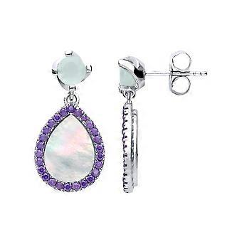 Jewelco London Ladies Sterling Silver Purple pear Cubic Zirconia Halo Tears of Joy Drop Earrings