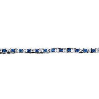 Jewelco London Ladies Sterling Silver Sapphire-Blue Princess Cut Cubic Zirconia Alternating Eternity Tennis Bracelet 4mm