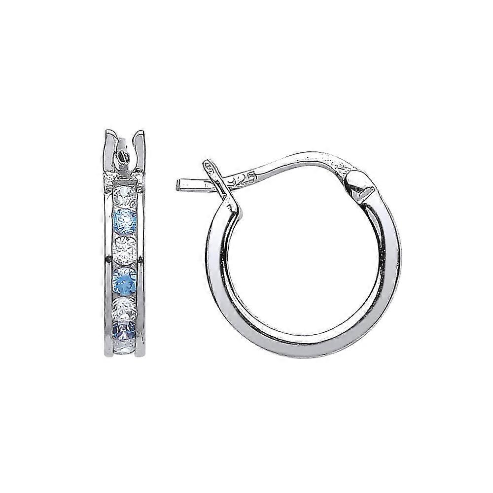 Jewelco London Ladies Sterling Silver Light Blue Cubic Zirconia Channel Set Eternity Hoop Earrings 12mm