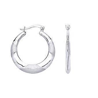 Jewelco London Ladies Rhodium Sterling Silver Satin Quadrant Round Hoop Creole Earrings