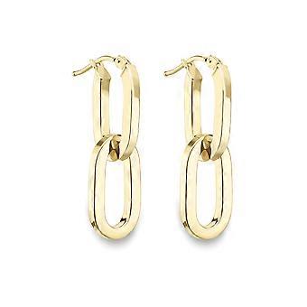 Jewelco London Ladies 9ct Yellow Gold Square Tube Oval Link Drop Earrings 15mm