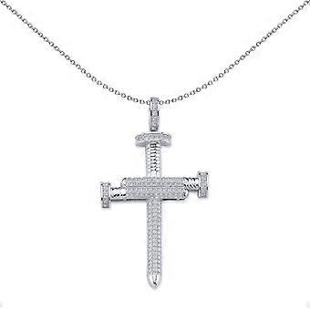Jewelco London Unisex Sterling Silver Cubic Zirconia Screw Nails Cross Pendant Necklace 18 inch