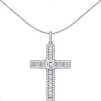 Jewelco London Unisex Sterling Silver Princess Cut Cubic Zirconia Vanity Mirror Style Cross Pendant Necklace 18 inch