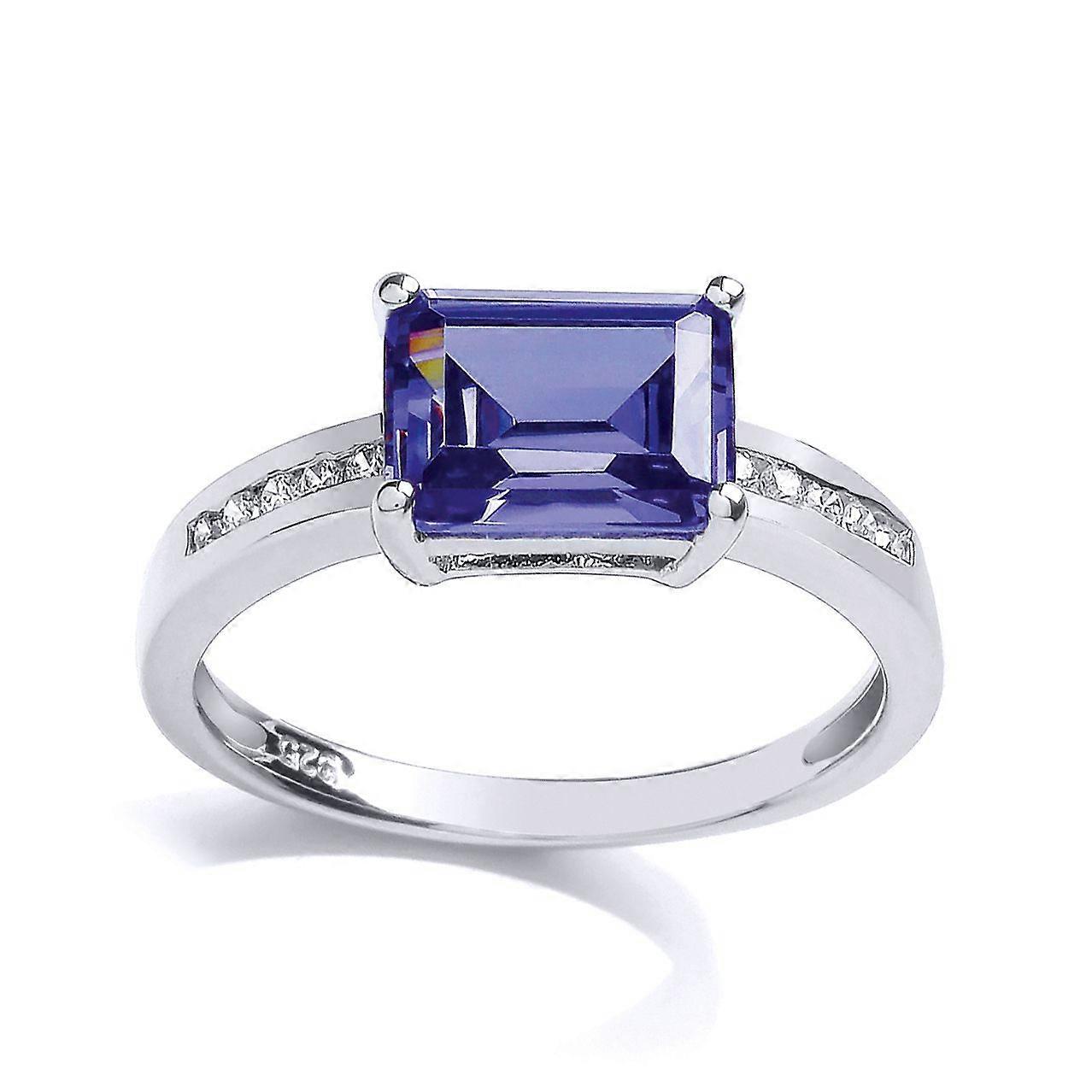 Jewelco London Sterling Silver Tanzanite-Violet Emerald Cut CZ Shoulder-Set 4 Claw Solitaire Engagement Ring