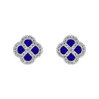 Jewelco London Sterling Silver CZ Blue Lapis Lazuli Clover Kiss Stud Earrings 11mm