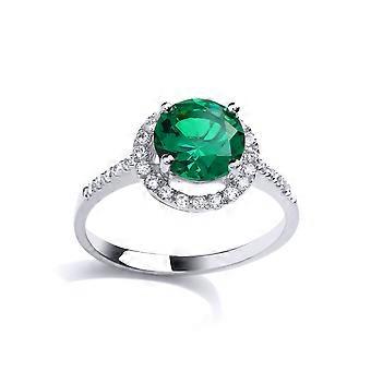 Jewelco London Ladies Sterling Silver Emerald-Green Cubic zirconia Shoulder-Set Halo Solitaire Engagement Ring
