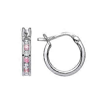 Jewelco London Ladies Sterling Silver Pink Cubic Zirconia Channel Set Eternity Hoop Earrings 12mm
