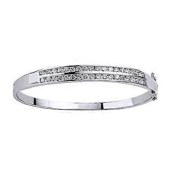 Jewelco London Ladies Sterling Silver Cubic Zirconia 2 Row Eternity Bangle Bracelet 6mm