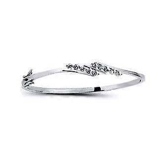 Jewelco London Ladies Sterling Silver Cubic Zirconia 5 Stone Crossover Bangle Bracelet