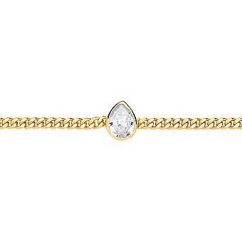 Jewelco London Ladies Gold-Plated Sterling Silver Pear CZ Bezel Solitaire Curb Chain Bracelet 3mm 7.5 + 1 inch