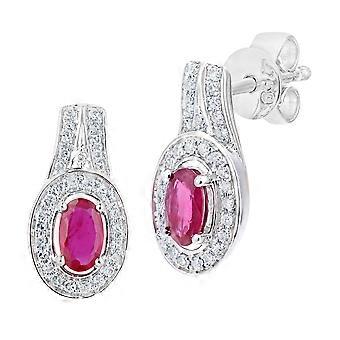 Jewelco London 18ct White Gold Round 15pts Diamond Oval 1/2ct Ruby Cluster Drop Earrings