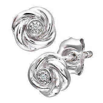 Jewelco London 9ct White Gold Round 1pts Diamond Flower Stud Earrings