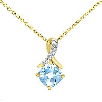 Jewelco London 9ct Yellow Gold Round 2pts Diamond Cushion 0.7ct Blue Topaz Kiss Crossover Pendant Necklace 18 inch 46cm