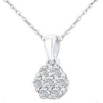 Jewelco London 9ct White Gold Round 20pts Diamond Cluster Pendant Necklace 18 inch 46cm