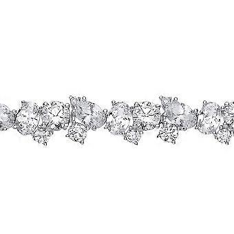 Jewelco London Ladies Rhodium כסף סטרלינג סגלגל CZ Messy אשכול מסנוור צמיד טניס