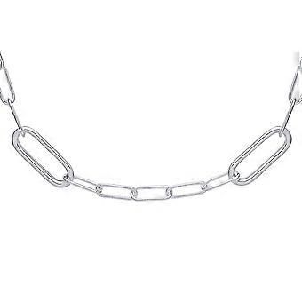 Jewelco London Ladies Rhodium Plated Sterling Silver Lil n Large Oval Paperclip Chain Necklace 11mm 17 inch