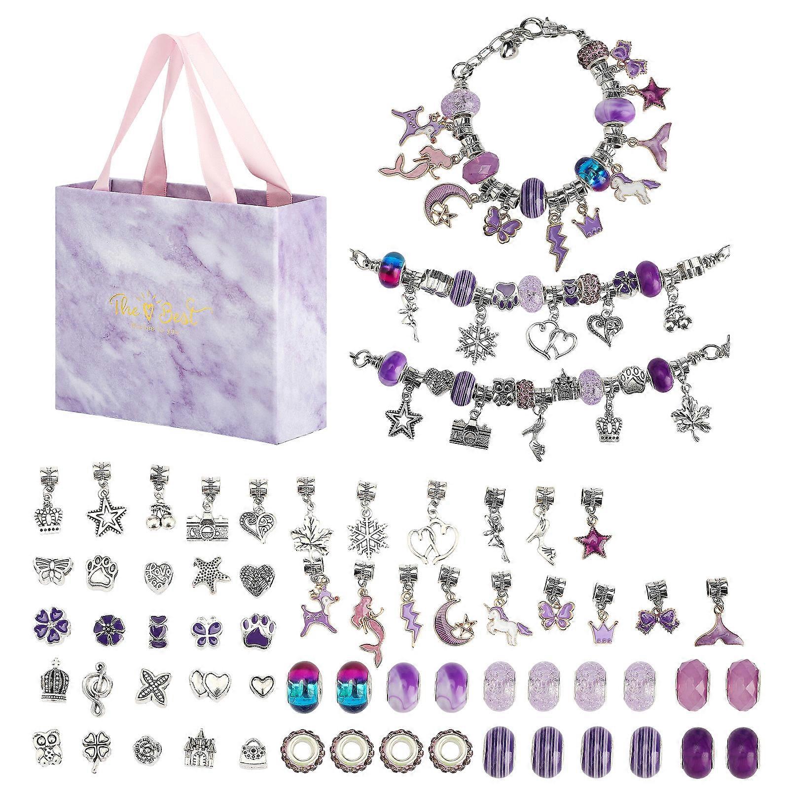 Jewerly Making Kit Charm Bracelet Making Kit Girls Jewellery Blue Crystal Bracelets Alloy Gift Pink Creative DIY,100% New