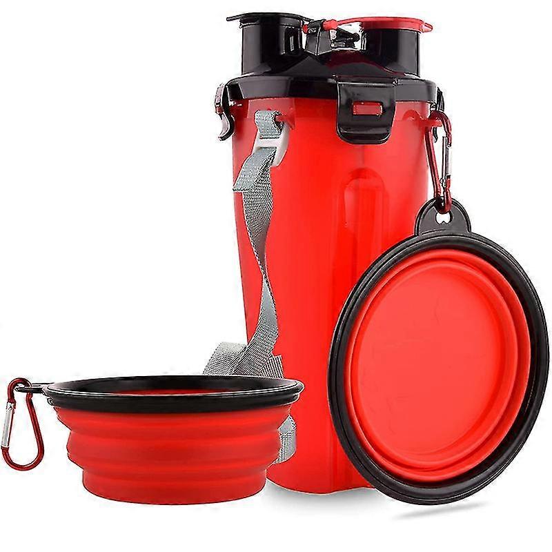 2 in 1 Dog Travel Collapsible Water Bottle Pet Food Container with Collapse Outdoor Double Bowls Used for Outdoor [Material quality]: Cup: PP material, foldable bowl: TPE material [Color]: red, yellow, blue, white, green, orange, pink, black [Packing]: independent OPP cups, independent OPP folding bowls [ Specifications]: Cup: 23cm in height and 11cm in diameter, bowl is 5.5cm in height and mouth bowl is 13cm in diameter [Capacity]: 350ml water cup, 250gm bean, 350ml bowl approx [Weight]: one cup 190g, one bowl about 60g 1. This travel dog bowl set comes with one bowl for water and food and two foldable bowls with carabiner clips. It's nice to keep both water and nutrients in one bowl for your outdoor walk, day trip, hike, and travel. 2. There are two compartments in the container, one for food and one for water. Insulation net on one of the mouth prevents food from pouring into both sides. 3. There are two wide mouths with lips on the lid, one for outlet of food and one for water, you won't mix food and water when you pour it. 4. Made of high quality PP and TPE material, it is very durable and reusable. Carabiners can be attached to a belt loop, backpack, leash or other locations, very convenient to bring. 5. It can store about 250g/8oz food and 350g/12oz water in the bottle, and the collapsible bowl is about 12oz, the large capacity should be enough to keep for a long time.