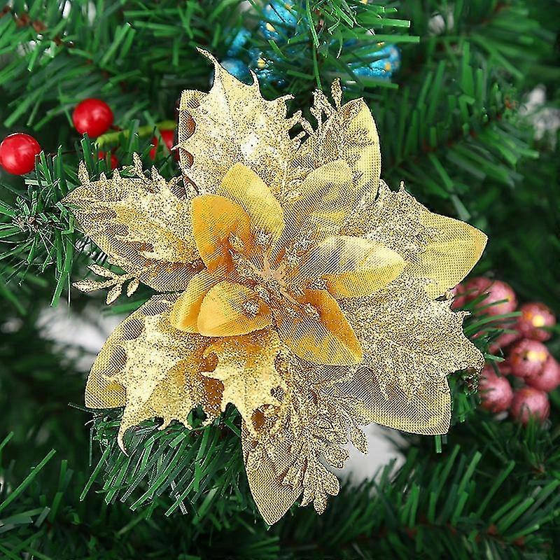 Jianghuo 5Pcs 14Cm Artificial Glitter Christmas Flowers Christmas Tree Ornaments Merry Christmas Decorations For Home New Year Gifts