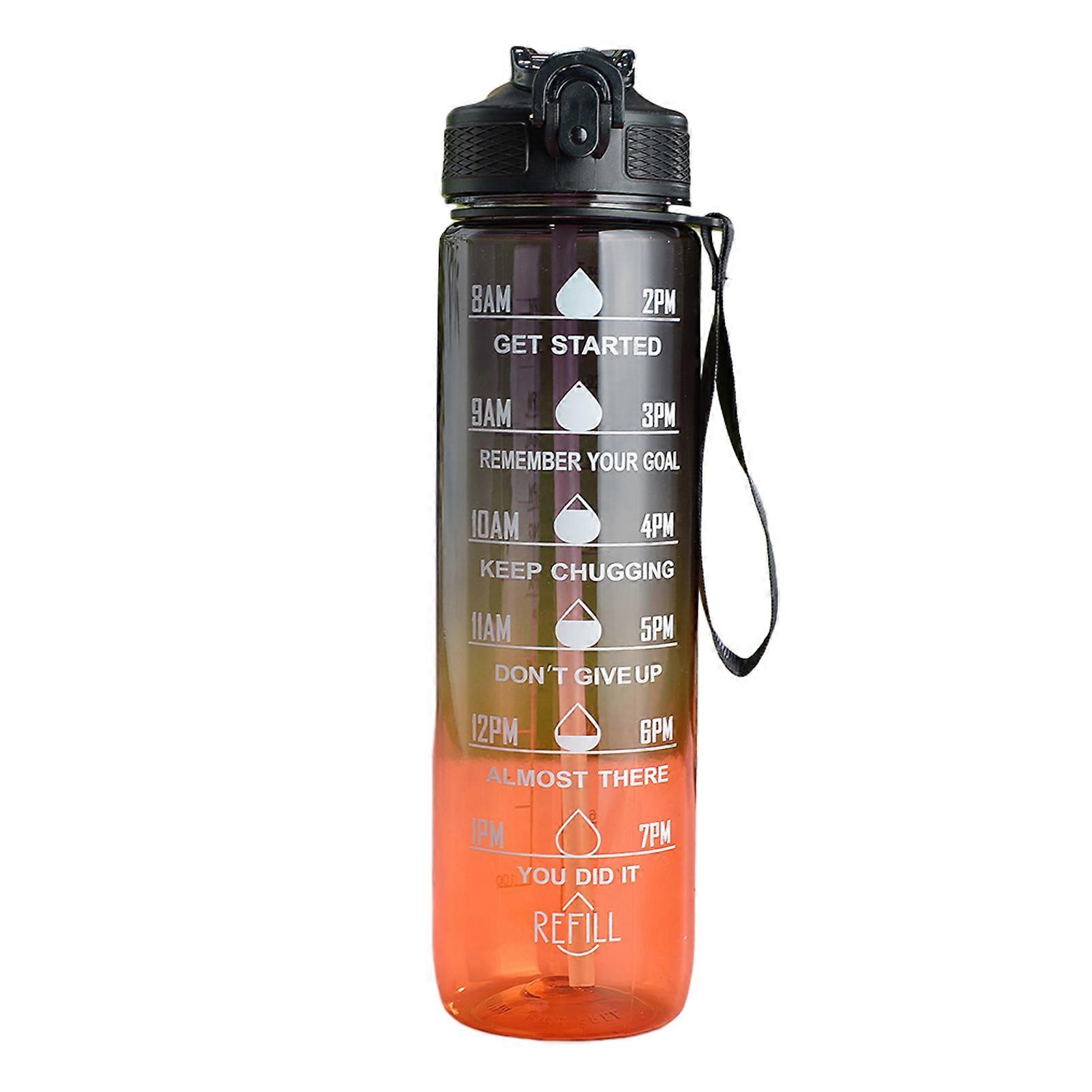 JiKaiX 1000ml Gradient Color Water Bottle Food Grade BPA Free Sports Water Bottle with Scale Strap Leakproof Gym Fitness Water Cup