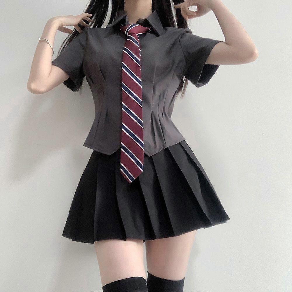 Jk Waist Trimming Shirt Women's Long-Sleeved Hot Girl Pleated Skirt Uniform Suit All-Matching Slim Fit Slimming Japanese College Style White