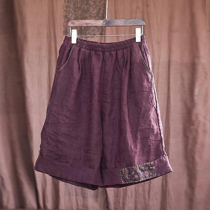 Johnature Women Vintage Wide Leg Pants Elastic Waist Solid Color Trouser Summer Loose Knee Length Pants