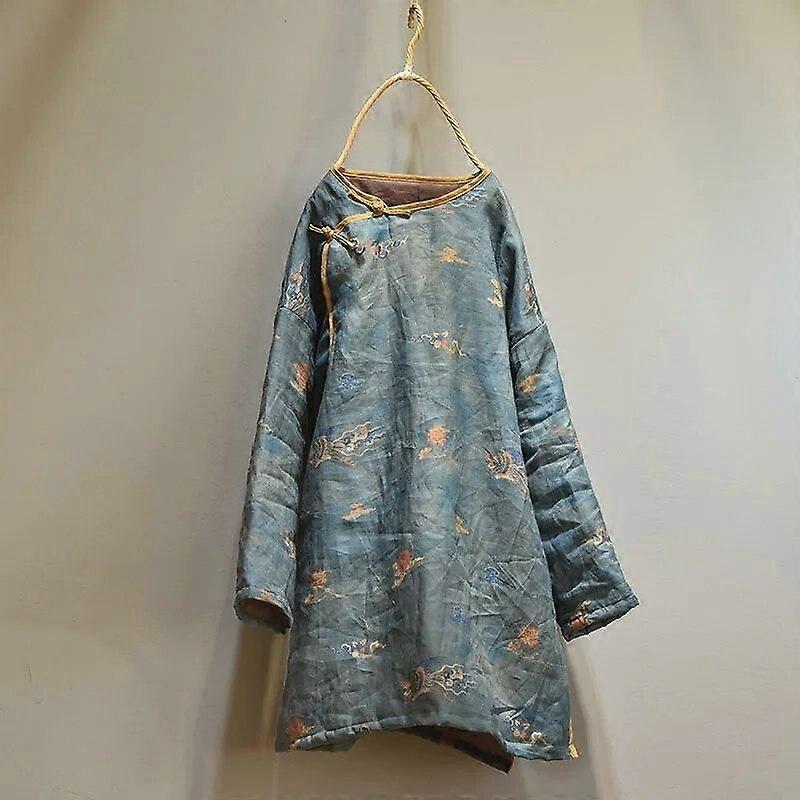 Johnature Women Vintage Parkas Print Floral Coats Winter Pullover Chinese Style Female Clothes Button Coats