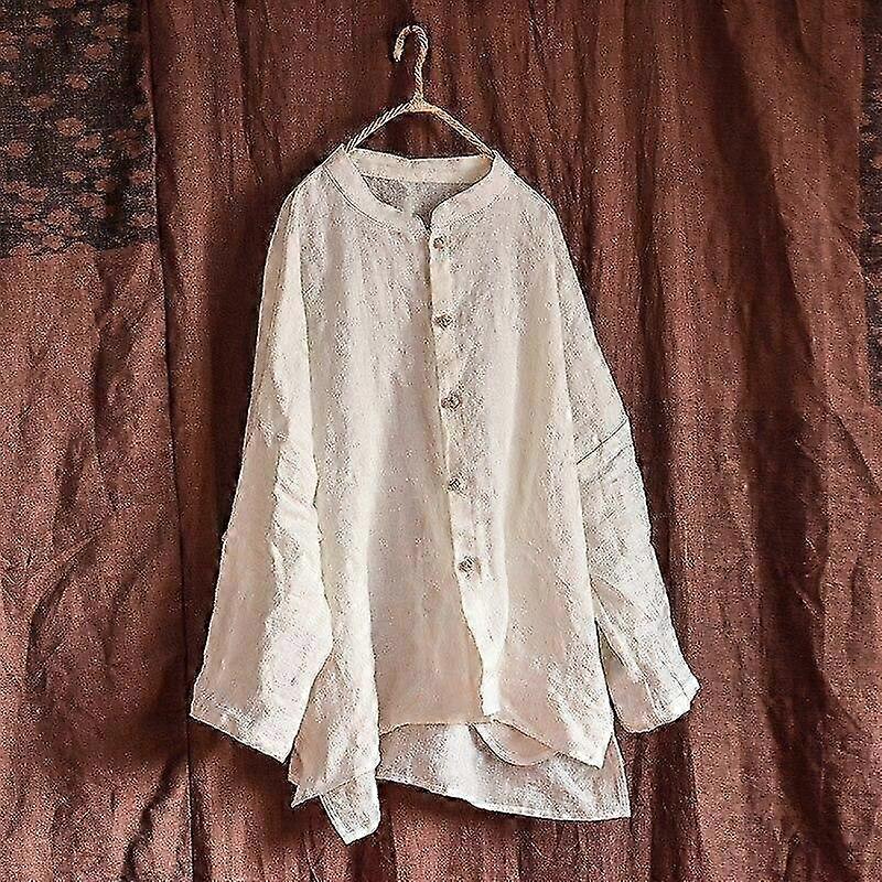 Johnature Women Vintage Linen Button Coats Stand Solid Color Long Sleeve Loose Coat Spring Chinese Style Casual Clothes 25-26