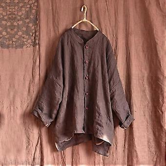 Johnature Women Vintage Linen Button Coats Stand Solid Color Long Sleeve Loose Coat Spring Chinese Style Casual Clothes