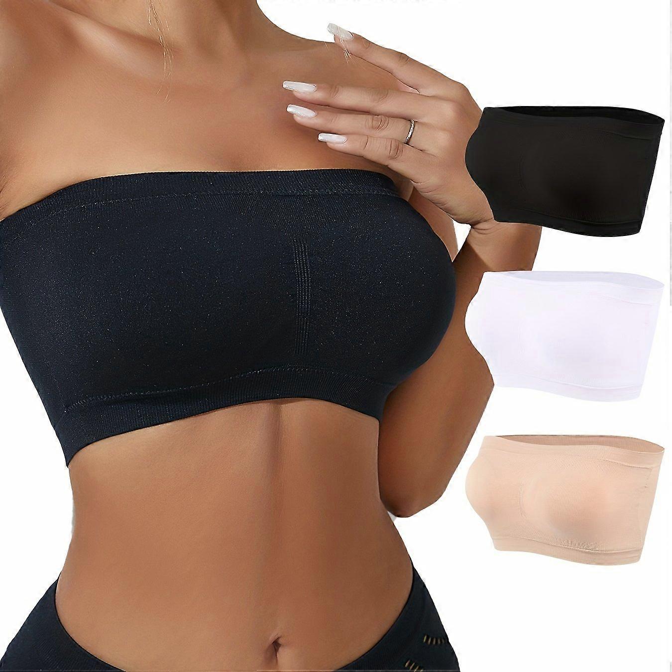 JUEGE* 3 Pcs Comfortable Double-layer Extended Size Shoulderless Strapless Bra, Slightly Breast Wrap Detachable Chest Pad Bra, Women's Lingerie & Unde