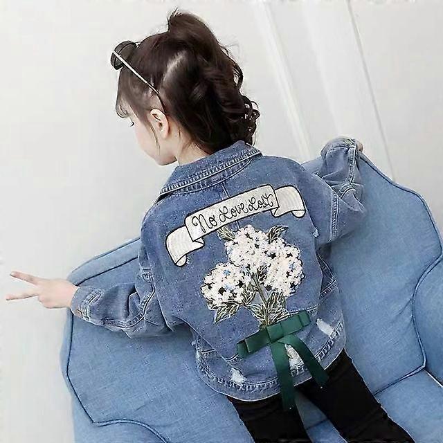 JWL-New Printed Cartoon Denim Jacket for Girl Kids Autumn Spring Baby Girls Letter Embroidered Denim Jacket Coats 3-14 Years Old