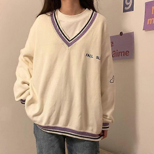 JWL-Sweaters Women Ulzzang Letter Chic Vintage V-neck Daily Preppy Girls Knitwear Fall Casual All-match Ins Long Sleeve Clothes Y2k