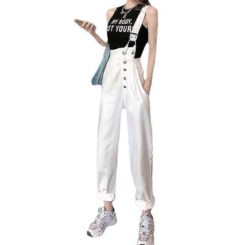 JWL-Jumpsuits Women Design Irregular One-shoulder White High Waist Denim Suspenders Trousers Streetwear Wide Leg Jump Suit Mujer Ins