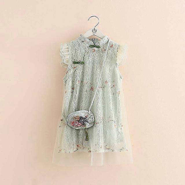 JWL- Summer 3 4 5 6 7 8 9 10 11 12 Years Chinese Han Style Hanfu Fly Sleeve Lace Cheongsam Dresses With Bag For Kids Baby Girls