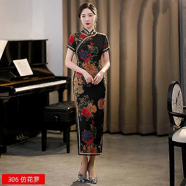 JWL-10 Color Traditional Chinese Cheongsam For Women Retro Elegant Floral Print Long Dresses Improved Slim Cheongsam 5XL Plus Size