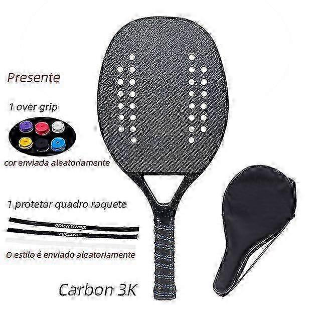 JWL-Professional Full Carbon 18K 12K 3K Beach Tennis Racket Solid Black Rough Surface Soft EVA Racquet Paddle Set with Bag