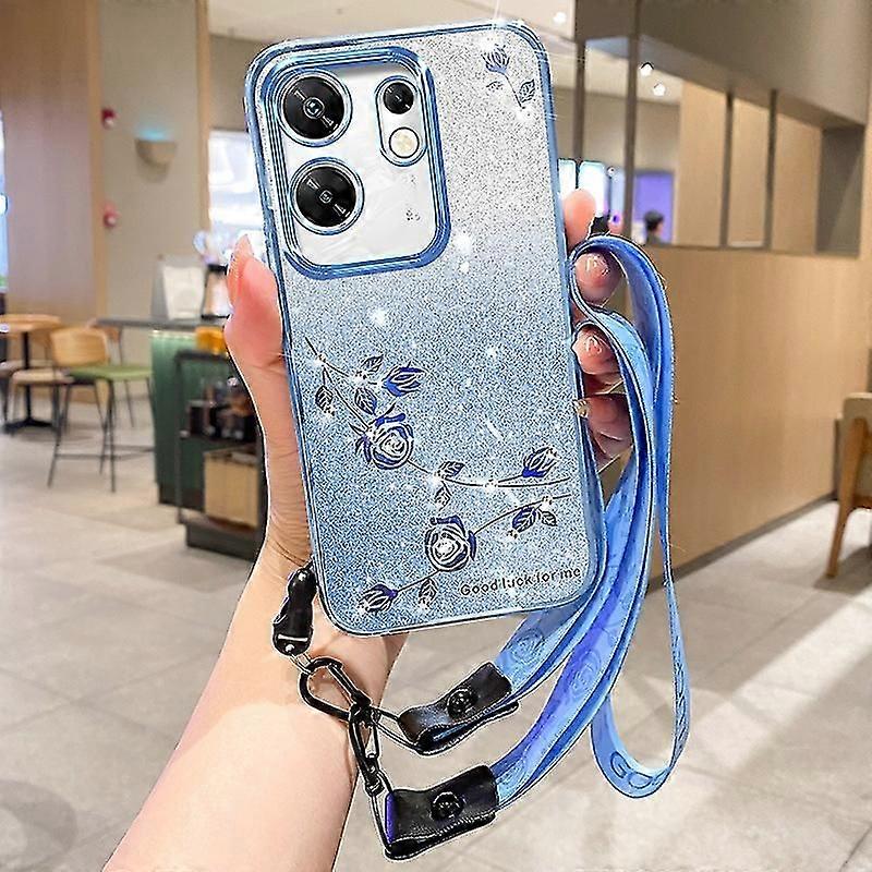 Kadem For Transsion Infinix Zero 30 4g Case With Lanyard Rhinestone Flower Glitter Tpu Cover - Blue