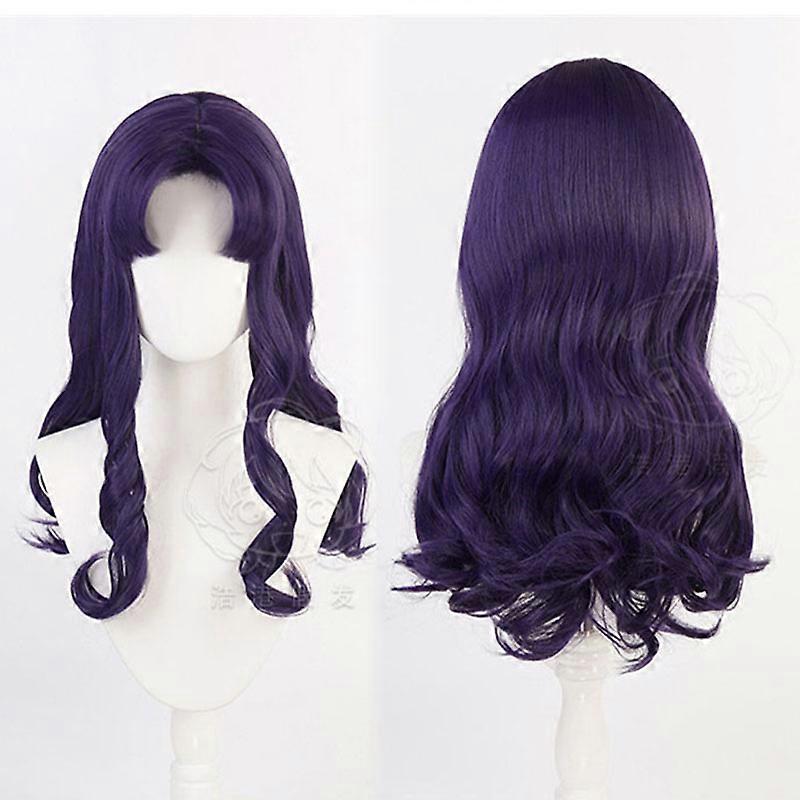 Katsuragi Misato Cosplay Wig Purple Long Wavy Heat Resistant Synthetic Hair Katsuragi Anime Role Play Wigs + Wig Cap