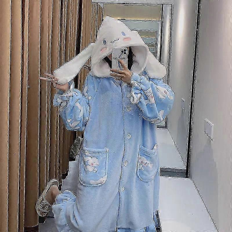 Kawaii Sanrio Kuromi Cinnamoroll My Melody Plush Loungewear Women's Pajamas Robe Hooded Cute Pajamas Plush Long Nightgown Gift
