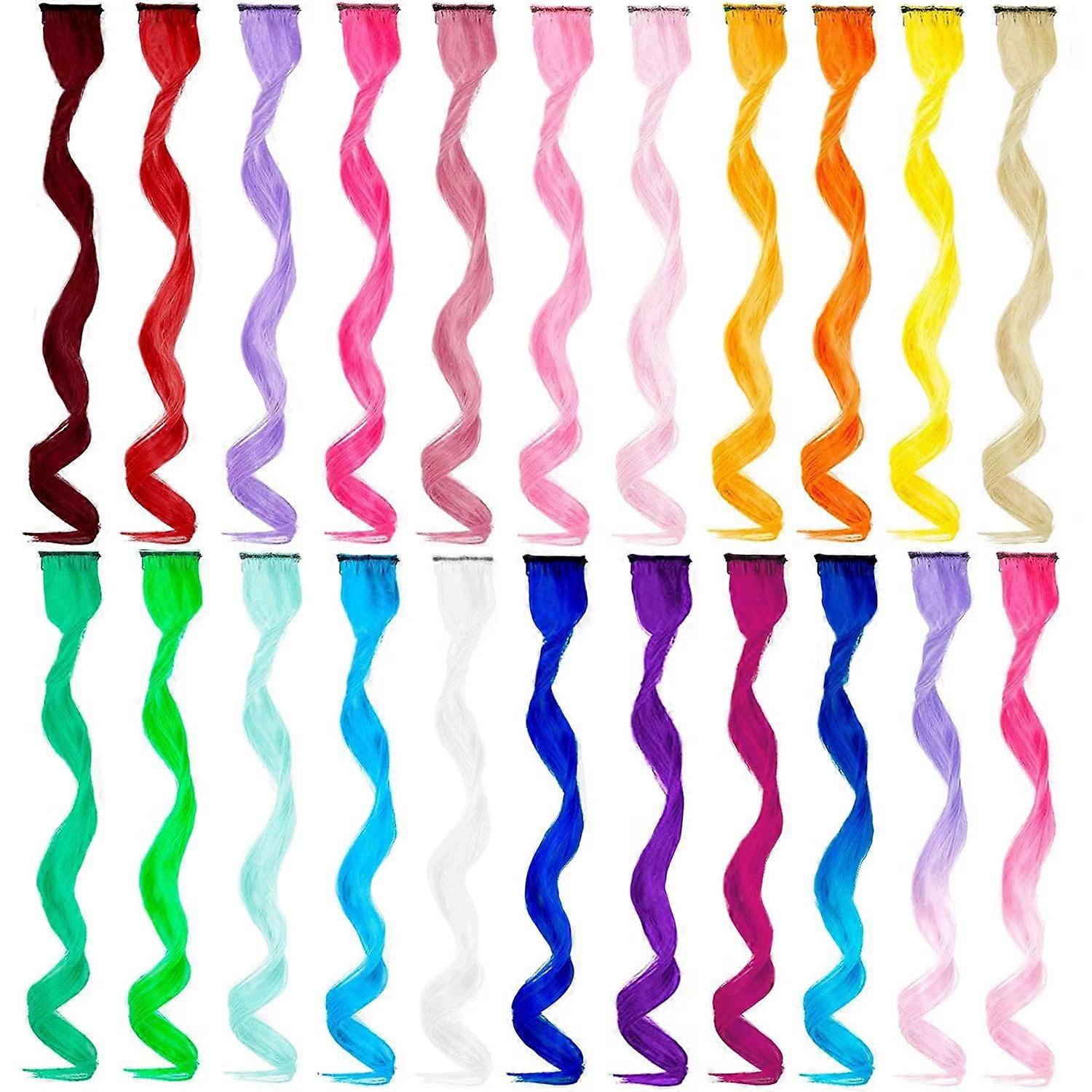 KINZON 12 PCS Hot Pink Hair Extensions Clip in, Curly Wavy Colored Extension for Kids Girls - Party Highlights Synthetic Hairpiece 17 inch22PCS-Colorf