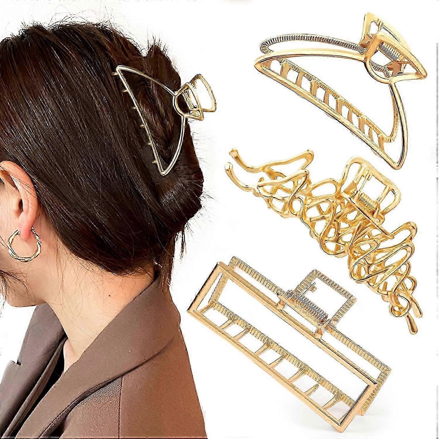 KinZon Mehayi 3 PCS Metal Large Claw Clips for Thick Heavy Hair, Strong Hold Big Non-Slip Hair Catch Barrette Jaw Clamp for Long Hair, Fashion Styling