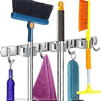 Kongque - Mop and Broom Holder Wall Mount - Heavy Duty Mop & Broom Hanger with 3 Grippers 4 Hooks, Stainless Steel Mop Holder Wall Mount for Laundry R