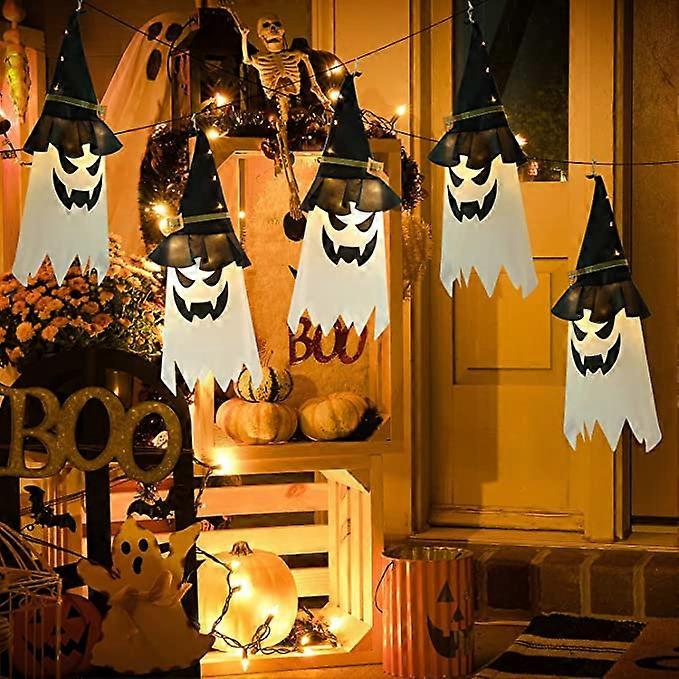 Kongque 5pcs Halloween Lights, Scary Hanging Lighted Ghost Witch Wizard Hat LED Halloween String Lights Clear Glowing Decoration for Yard Tree Garden