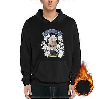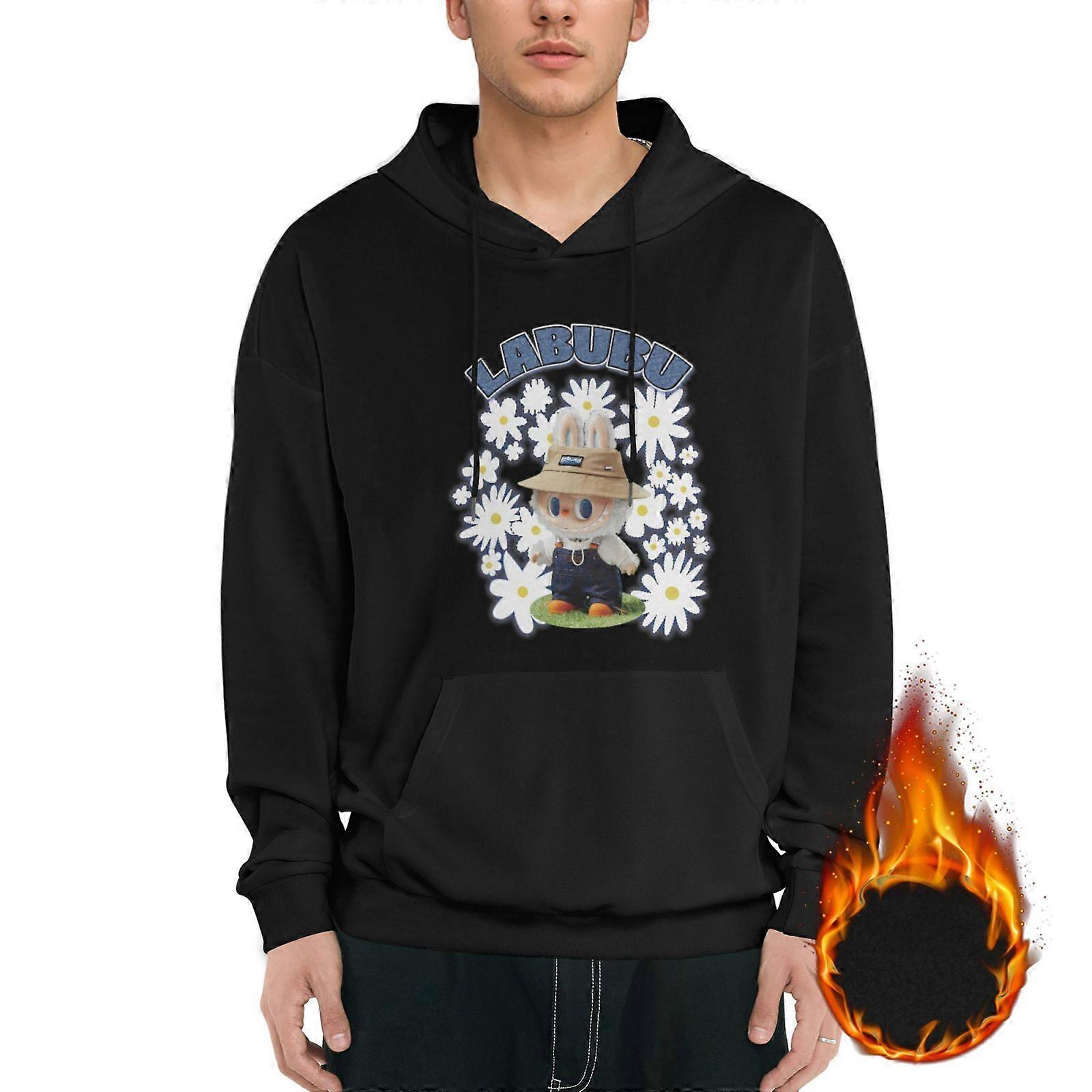 Labubu in Sun Hat and Denim Overalls with Daisy Background Print Men's Hoodie