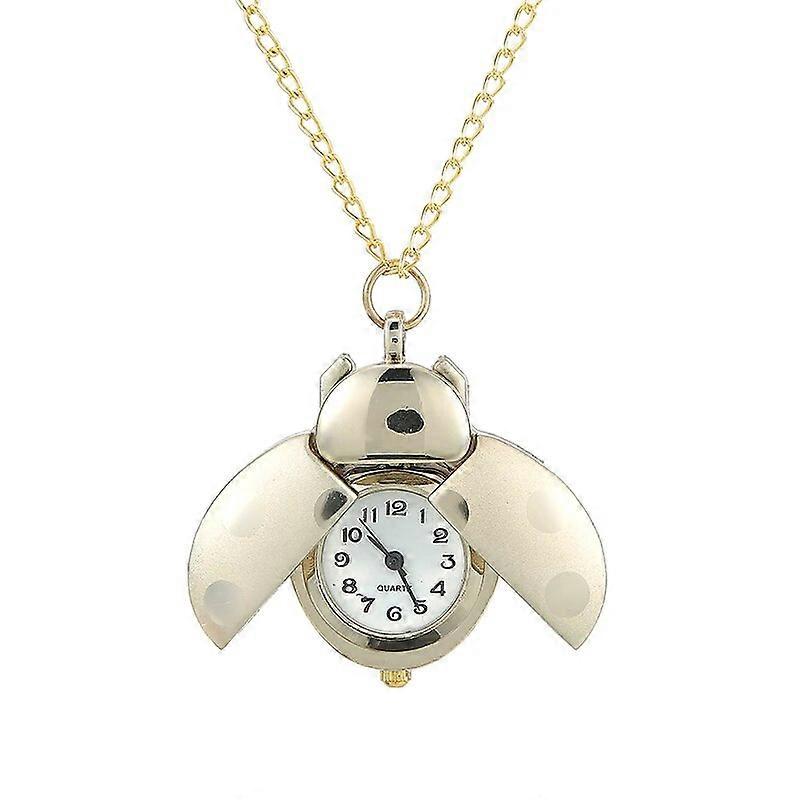 Ladybug Beetle Pocket Watch Fashion Women Girl Small Animal Chain Necklace Pendant Quartz Fob Pocket Watch Birthday Gift