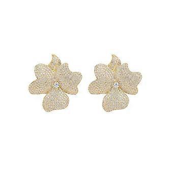 Latelita עגילים צמודים כסף סטרלינג 925 בצורת פרח לנשים בזהב 18 קראט עם זירקוניה מעוקבת לבנה - 3.2 ס"מ x 3.2 ס"מ