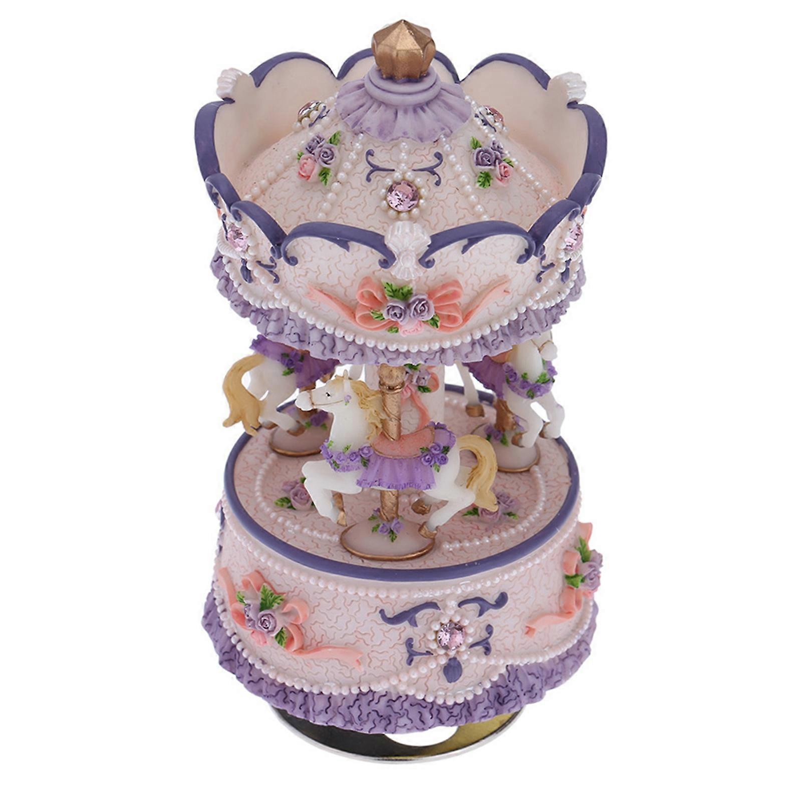 Laxury Windup 3-horse Carousel Music Box Artware/Gift Melody Castle in the Sky Pink/Purple/Blue/Gold Shade for Option