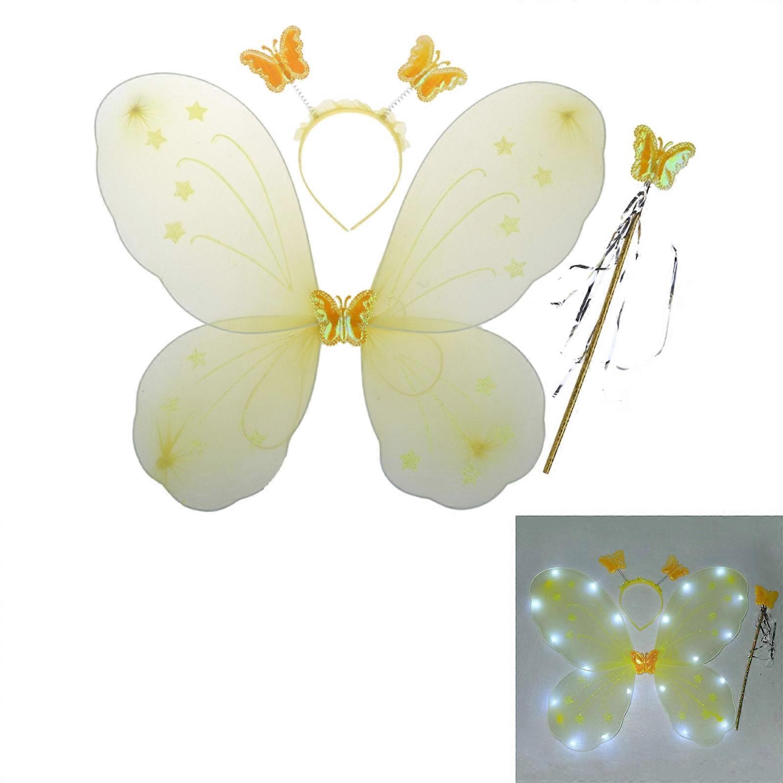 LED Light Up RolePlay Butterflies Costumes Princess Fairy Wing Magic Wand Headband 3Pcs Halloween Cosplay Party Props Yellow