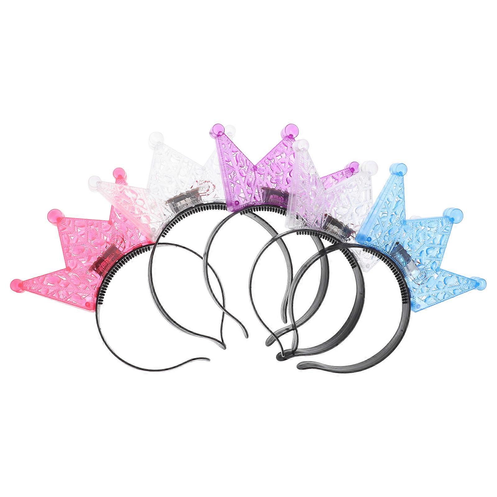 LED Shining Headband Crown Shape Headwear for Girls Concert Assorted Color Rechargeable 5Pcs
