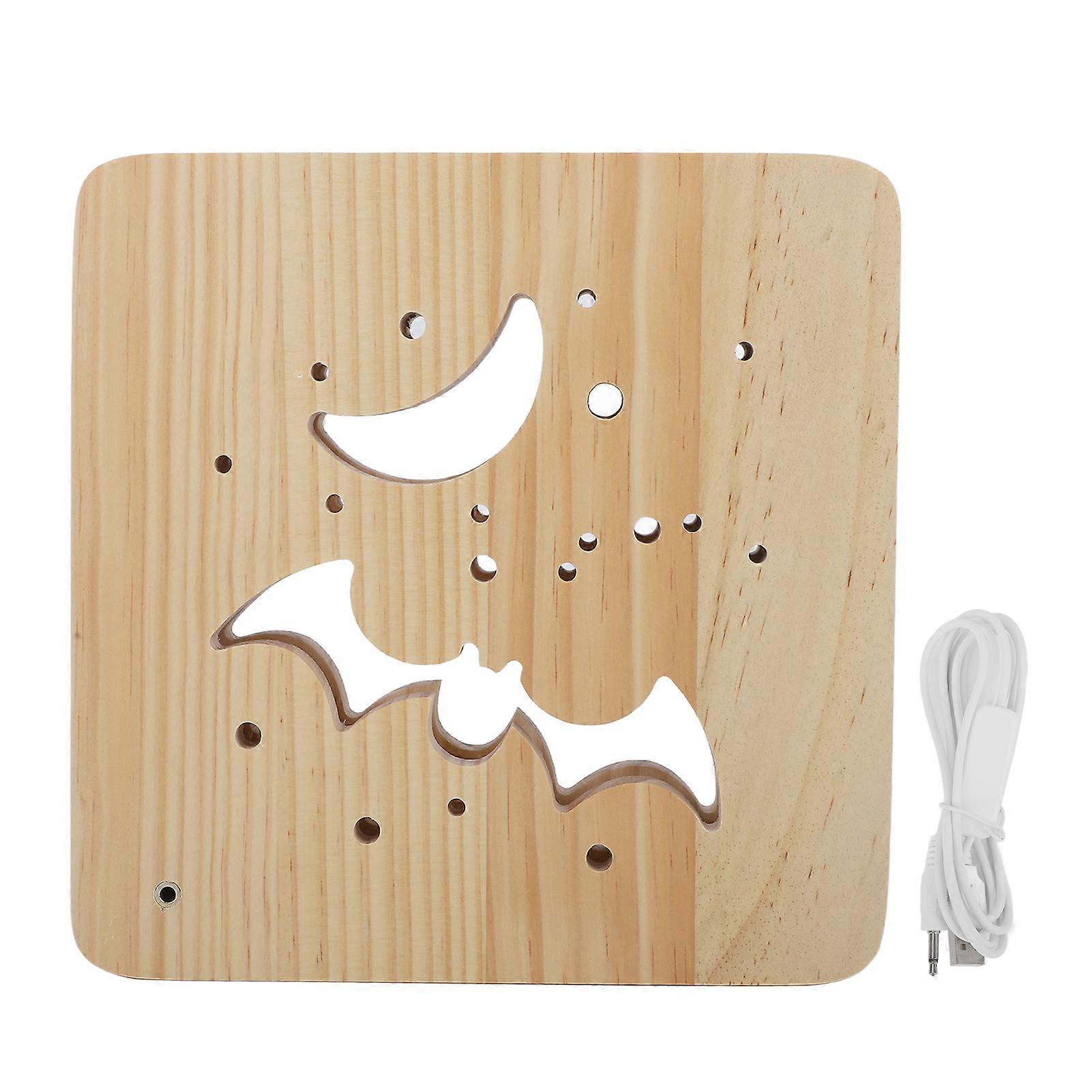 LED Wooden Ghost Halloween Night Lamp Eye Protection Decorative Hollow Out Bedside Lamp